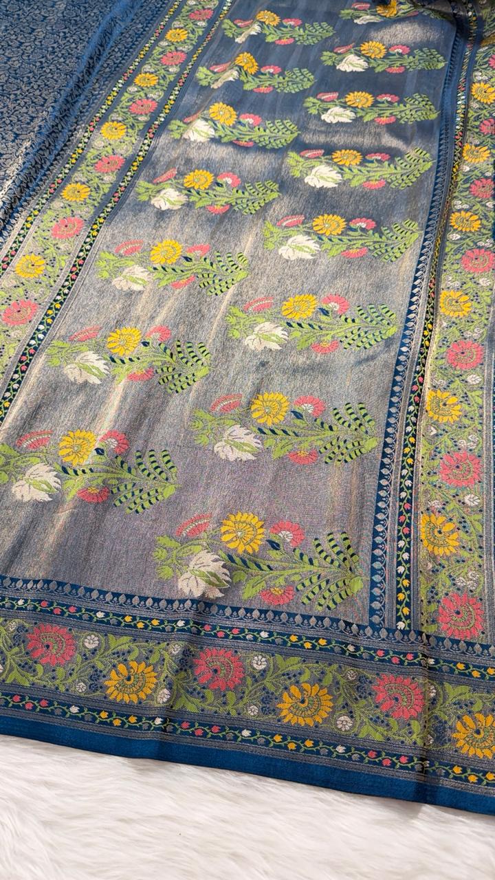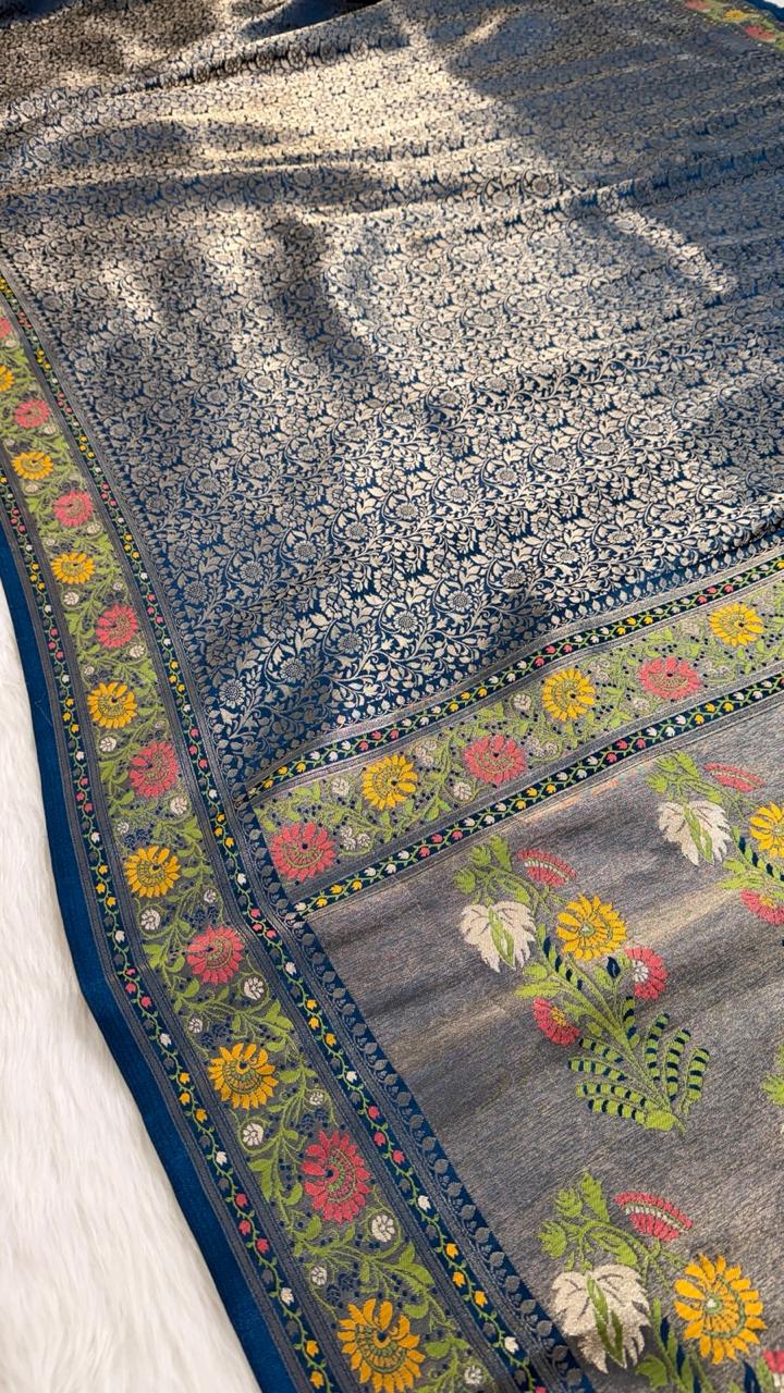 Blue Tanchui Banarasi Semisilk Saree