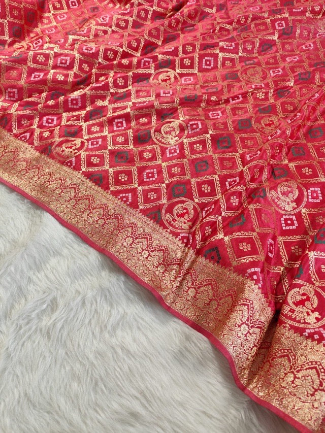 Pink Banarasi Satin Silk Saree
