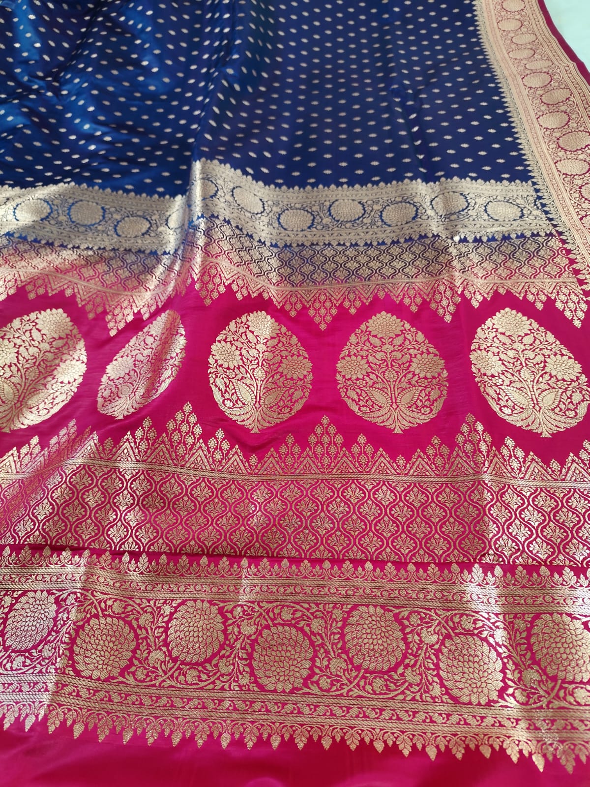 Elevate your elegance with the Royal Blue Buti Banarasi Katan Silk Saree, a masterpiece woven from fine Katan silk. This saree features intricate buti motifs crafted with a rich texture and timeless appeal. Its deep royal blue shade complements both formal occasions and festive celebrations, offering a graceful drape and luxurious sheen. Ideal for Banarasi lovers, this saree combines artistry with lasting quality for a distinguished statement.